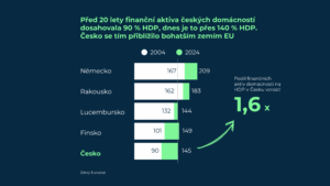 To se se také projevilo na růstu finančního bohatství domácností. Dnes mají české domácnosti ve finančních aktivech uloženo téměř 12 bilionů korun, tedy zhruba 145 % HDP. Tím se velikostí svých finančních rezerv, a tedy i kapitálových zdrojů pro ekonomiku, dostaly na úroveň srovnatelnou se zeměmi jako Finsko či Lucembursko.